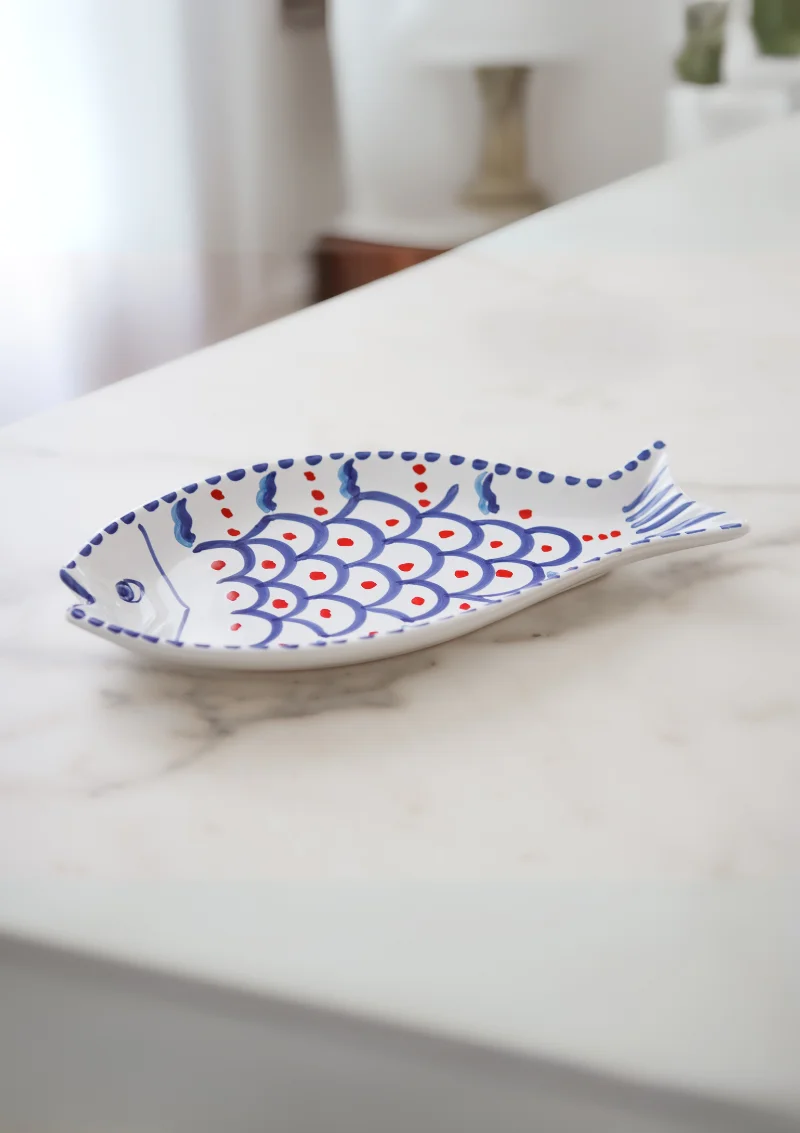 Que vous organisiez un déjeuner estival en plein air, un dîner à thème marin ou un apéritif entre amis, cette assiette en Majolique Poisson deviendra rapidement la star de votre table. Elle s’associe parfaitement avec d’autres pièces de la collection Maison Gala pour créer une ambiance harmonieuse et colorée.