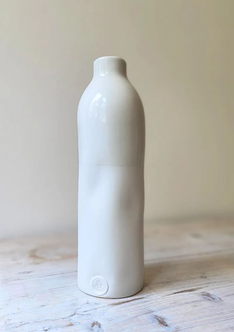 Élégante, artisanale et intemporelle, la bouteille en porcelaine de la collection Mira incarne tout le savoir-faire de nos ateliers. Pensée à la fois comme objet décoratif et comme vase, cette pièce singulière se distingue par son design épuré et sa finition soignée. Disponible désormais en blanc, elle reflète la pureté et la délicatesse de la porcelaine, s’intégrant aussi bien dans un intérieur contemporain que dans un décor plus classique.